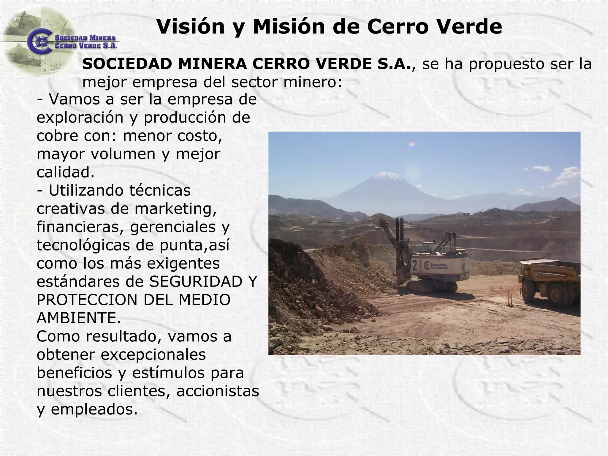 Cerro Verde, uno de los complejos mineros de cobre más importantes del Perú y del mundo, representa un pilar fundamental para el desarrollo económico del país. Su operación, ubicada en Arequipa, no solo es sinónimo de excelencia en la producción de minerales, sino también de un compromiso inquebrantable con las mejores prácticas de sostenibilidad, seguridad y responsabilidad social. Formar parte de esta empresa líder es una oportunidad para contribuir a un proyecto de gran escala con estándares internacionales.
