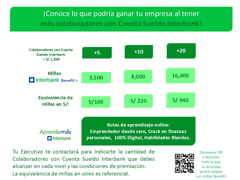 Interbank otorga todos los beneficios establecidos por la legislación laboral peruana de manera obligatoria, y en muchos casos, con condiciones que superan el mínimo legal. Estos beneficios constituyen la base de la seguridad y protección del colaborador y su familia.